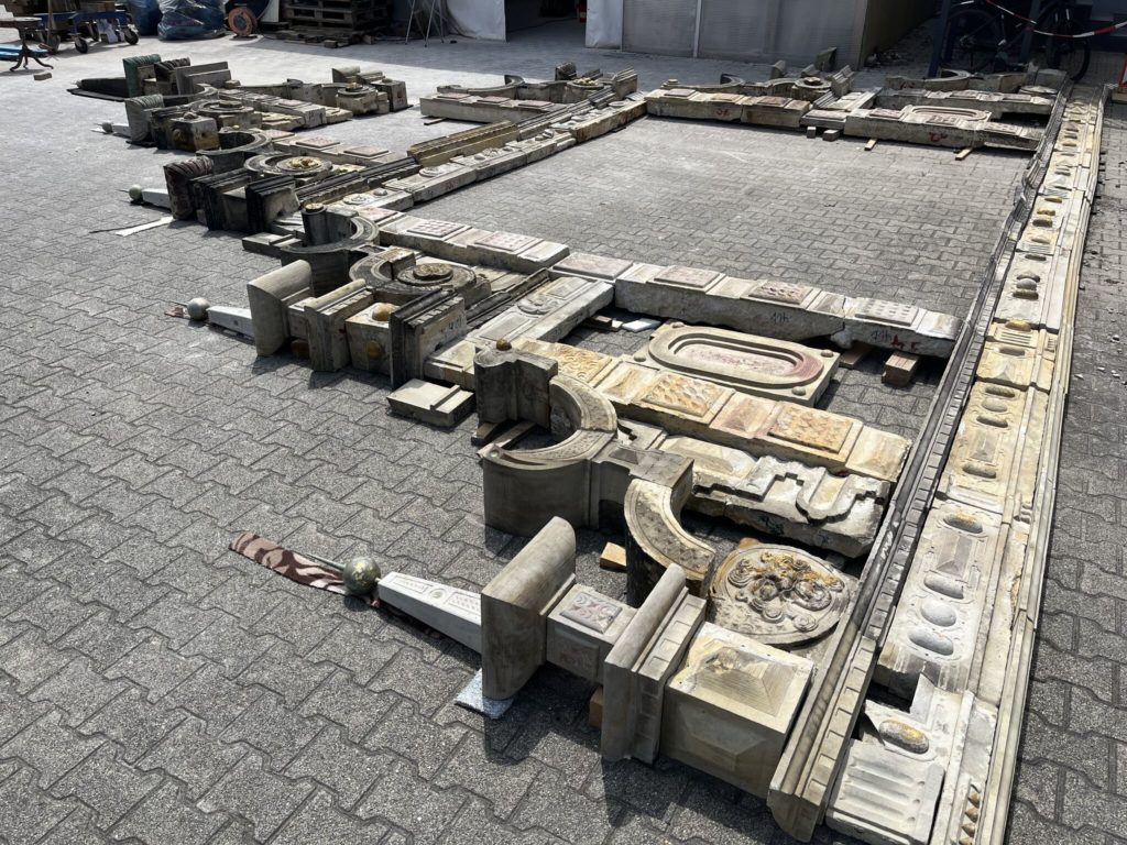Derzeit verschaffen sich die Expertinnen und Experten der Steinrestaurierung Armin Hellstern Steinrestaurierungen GmbH sowie der Gruppe GME Architekten BDA einen Überblick über die Spolien und planen die bautechnischen Möglichkeiten für den Wiederaufbau.